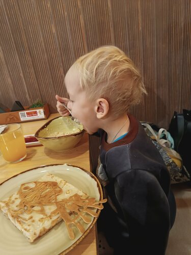 Очень уютное место, чисто, аккуратно, вкусные блюда, шикарная овсяная каша на завтрак на топленом молоке, сын оценил, съел всю. Блинчики на любой вкус, деткам рисуют тестом фигурки. Очень любим как традиционные блюда, так и сезонные новинки. Удобная программа лояльности. Именно этот ресторан удобен расположением и отдельное спасибо, что есть возможность поесть из керамической посуды)