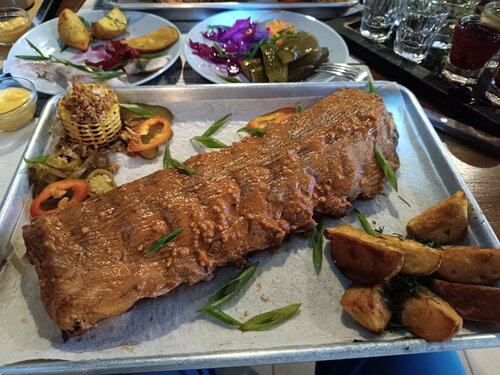 Шикарное место. Огромное количество настоек-от сладких до огненных, на любой вкус. Закуски, салаты, рёбра свиные-это отдельный вид кулинарного искусства. Прикольное место, интерьер. Звуки зарядки из СССР в туалете)))) Обязательно рекомендую к посещению.
