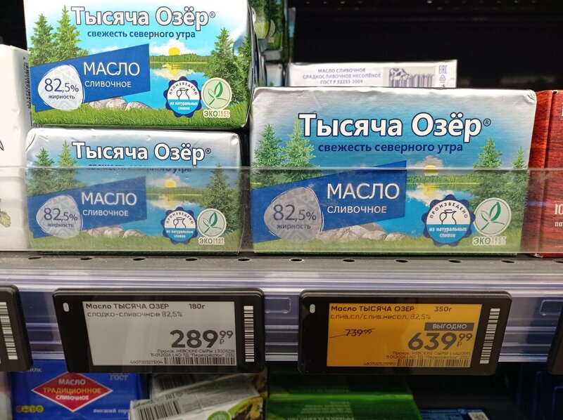 Сегодня делала тут покупки. Среди них было печенье. На ценнике было 100 р (99 с копейками), на кассе самообслуживания оказалось 130 (129 с копейками). Ценники я проверяю, т.к. одно время они их умышленно вешали неправильно. Теперь вот осваивают новую подлянку. Не первый раз уже замечаю несоответствие цен. Добавлю. 18.01.26 Посетила магазин. И снова впечатлилась. Цена на одно и то же сливочное масло 289,99 р за 180г и ВЫГОДНО! 639,99 р за 350г (329,14 р. за 180г). Выгодно магазину? Теперь так надо к желтым ценникам относиться?