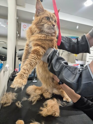 Ехали с опаской, все таки кот большой, своенравный, но ничего, справился со стрессом. Немного шипел, зато огромную кучу шерсти мы оставили наконец-то не дома!!! Девочкам большое спасибо! Нашли подход к нашему любимцу.