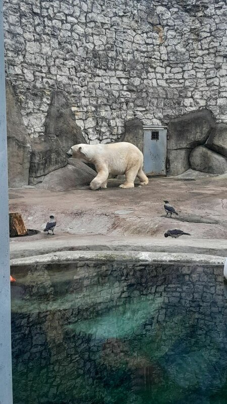 Московский зоопарк большой, надо выделить полдня-день, чтобы всё посмотреть. Много интересных животеых увидели, но многих не было в вольерах ни на улице, ни в павильонах. Порадовали орангутаны - они с детками были в двух вальерах, две семьи, играли со своими детёнышами. Ластоногих можно посмотреть снаружи, а можно зайти в павильон и там понаблюдать, как они плывут в толще воды. Но видимость очень плохая, животных видно, если они близко подплывают к стеклу. Много птиц, которых так же можно посмотреть снаружи в вольерах, а можно зайти в павильон и посмотреть птиц на гнёздах. Попугаи и казуар понравились, очень яркие, оперение сочное красивое. Понравилось помещение с бабочками и тропическими растениями. Там представлены живые куколки, из которых вылупляются красивые большие бабочки. Можно увидеть весь процесс выхода бабочки из куколки, как она сидит и расправляет крылья, как она их обсушивант перед первым полётом. Это очень долгий процесс, но мы застали все этапы, так как там много куколок разных видов бабочек и у всех разный этап выхода из куколки. Так же понравились террариумы с насекомыми, в основном это были различные виды тараканов и палочников, но так же несколько огромных пауков, кузнечиков, скорпионов. Видели панду, которая флегматично сидела перед стеклом вольера и ела бамбук. Было удивительно, что пришла и села прямо перед стеклом, хотя вольер большой и она могла сесть где-то подальше и было бы худе видно её. Белых медведей было два, один постарше, покрупнее, более желиый был почему-то в волтере без снега, а более молодой медведь был в волтере с большой гррой снега. Были поатные павильоны, от 350 до 500 руб. вход, но мы туда не заходили. Животные в удовлетворительном состоянии, если сравнивать с Ленинградским зоопарком. В Ленинградском зоопарке животные лучше выглядят и сам зоопарк чище, хотя вход стоит дешевле. В Московском зоопарке грязновато, много тараканов, хотя они, наверное,постоянные спутники таких мест. Аквариумы и террариумы заросшие водорослями и мхом, стекла с налётом. В целом, если абстрагироваться от этого и если не с чем сравнить, то зоопарк хорош.