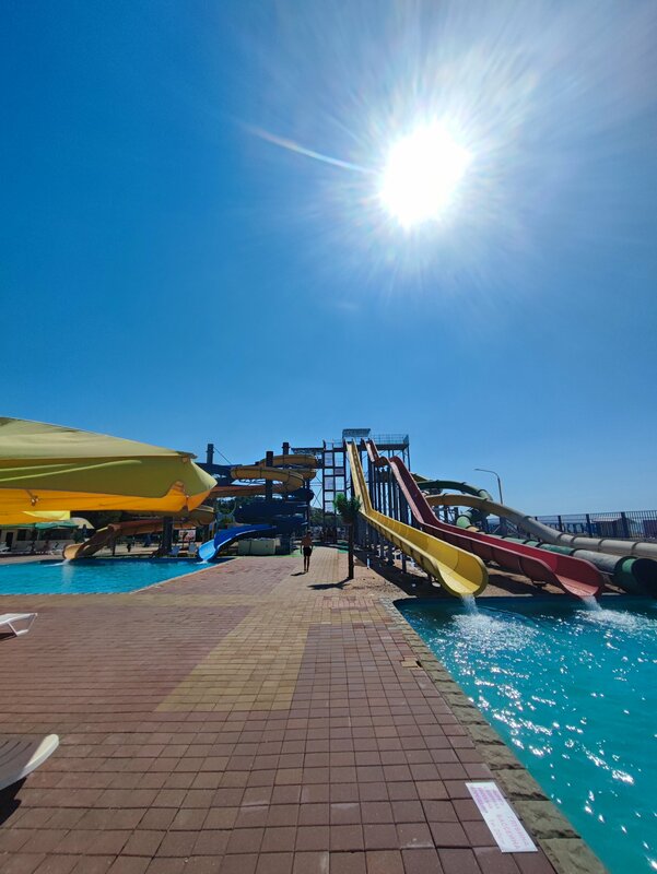 Небольшой, но приятно провели время. Все кто будет отдыхать в городе Ейске, рекомендую. Не дорого, есть кафе и столовая. Очередь на горки не большая, либо отсутствует.
