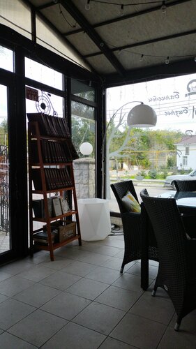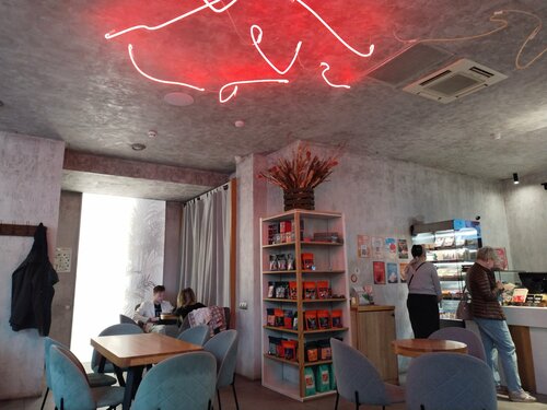 Небольшое заведение на улице Революции - центральной улице для прогулок отдыхающих и туристов - от центра через парк к Сакским грязелечебницам. Лестница к первому этажу жилого дома неожиданно приводит в поместительный зальчик, где ловко управляются персонал - молодой человек и застенчивая девушка. Разнообразный ассортимент кофейных напитков; есть, что выбрать из десертов. Два раза приезжали в Саки прогуляться, оба раза заглянули сюда и остались довольны.
