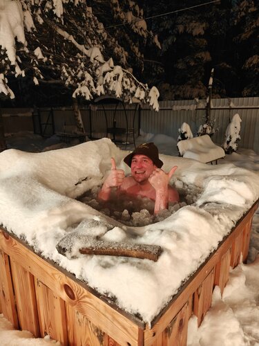 Баня понравилась, чисто и в доме, и в парной. Есть необходимая посуда, чай с травами, чтобы пить после баньки, холодильник, микроволновка, пол с подогревом, в доме прям тепло. Владелец контактный, отзывчивый, всё рассказал, показал. Из парной через предбанник выход на улицу. Там чан горячей воды с еловыми ветками и цитрусами и рядом купель. Уверена, что ещё вернёмся сюда🤗👏❤️