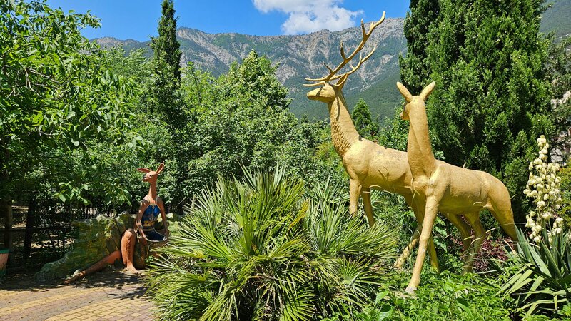 Зоопарк очень нравится, расположен практически в горах, но при этом можно за 20 минут добраться из Ялты на 24 маршрутке. В этом году очень дорогие билеты - 2000= взрослый и 1000= детский, только наличными и нет никаких льгот и скидок. Животных много. Очень радует, что почти всех можно покормить, фото и видео получаются эффектные. На входе продают корм на любой вкус. В этом году есть ощущение запустения, видимо зоопарку сложно выживать. Но посетить стоит. Гуляли около трех часов. Берите в жару с собой воду. Много деревьев, в тени много скамеек, можно отдохнуть.