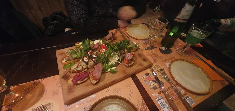 Место очень популярное, просто прийти и сесть за столик вряд ли получится в прайм-тайм, надо заказывать. Несмотря на ожидание столика, обслуживание было очень быстрым.не навязчивое, но в то же время обстоятельное - официанты блюда советуют, рассказывают. По кухне вкуснятина просто необыкновенная, закуска на троих - обалдеть, и необязательно под водочку. Живая музыка есть в одном из залов, детская комната тоже. Были в выходные - много детей было. Интерьер достойный, очень уютный, компании за соседними столиками друг другу не мешают.