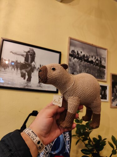 Вот такая капи теперь обитает у бариста кофейни CoffeeBara в Москве. Кстати, очень приятная атмосфера и кофе ^^ Апельсиновый раф - моё почтение :3