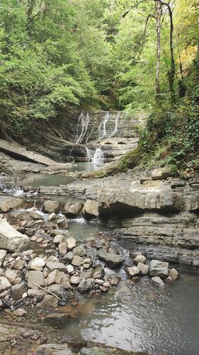 Красота и ещё раз красота,нам повезло и было немного людей,подняться немного сложновато в горку,но это того стоит. Прекрасно погуляли,можно покушать в кафе,вкусно кормят,цены нормальные(шашлык из вырезки свинины 400 гр.,суп куриный,хлеб,два соуса,соленья(объедение)и литр лимонада обошлось в 3500. Из кафе вид на водопад. В них можно купаться. Мы доезжали самостоятельно из Сочи на 120 автобусе,остановка прямо рядом,местные подсказывают как пройти,но там сложно ошибиться,если ехать из Сочи,от остановки перейти на противоположную сторону и увидеть дорогу крутую вниз,вам туда и упретесь во вход. Вход на территорию заповедника платный,300 взрослый,дети до 18 лет бесплатно.