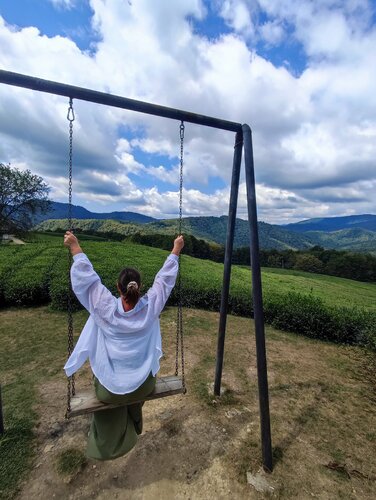 Именно на этой плантации очень красиво,вход 300 руб.,виды огонь. Она больше нижней,которая бесплатна,но обязательно сходите,ни разу не пожалела. Так же там можно перекусить,небольшой же кафе,но лучше взять с собой,цены кусаются,два блинчика,слойка и два чая вышли около тысячи.Сходите дальше кафе по дороге,весьвид там,а многие покупают и уходят. От Сочи можно доехать на 120 автобусе(80 руб. Останавливается прямо напротив входа если попросить),но оттуда идите до остановки,нам сказали остановится,нет,не остановится😄