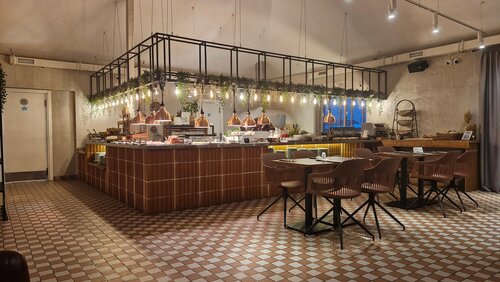 Хорошее семейное кафе. Красивый интерьер с растениями. Есть детская комната, комната матери и ребенка. Вкусный борщ, свежие овощи в салате, есть детское меню.