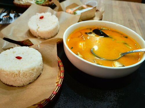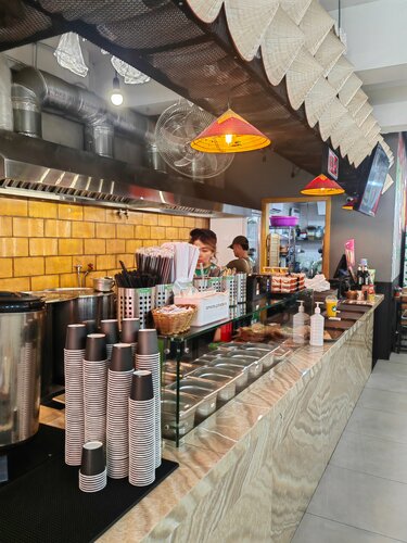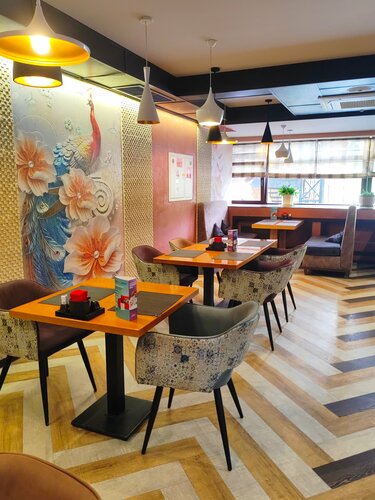 Выбрали это кафе по отзывам и не прогадали! Очень вкусно, порции огромные, все выглядит очень аппетитно. Цены в меню средние, даже очень выгодные - учитывая объём порции. Обслуживают молниеносно!!! Мы только оплатили заказ и на подносе уже все готово. Девушка на кассе при оформлении заказа кричит поварам на кухне названия блюд - очень атмосферно , прям переносит в азиатскую закусочную! 🔥 Интерьер кафе выдержан в азиатском стиле, все очень симпатично. Нам было вкусно! Спасибо!