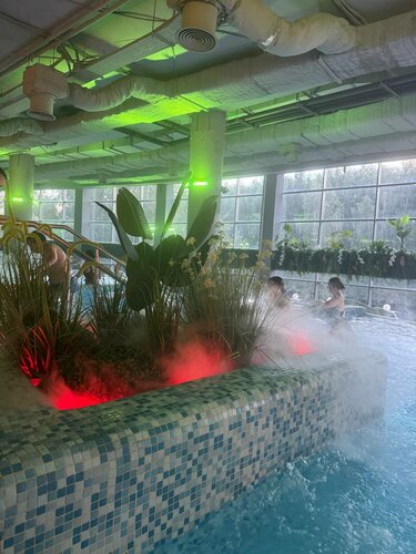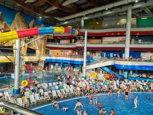 Один из крупнейших аквапарков в Москве. Мы берем всегда абонемент аквапарк+термы. Удобная новигация, много спасателей, которые действительно следят за порядком. Горки все классные, но на половину всех горок огромные очереди, даже в будние дни. Термы шикарные - лабиринт бассейн покорил сердечко! Лежаков достаточно и в зоне аквапарка, и в термах. В джакузи попасть достаточно сложно - туда тоже очереди... И очень большой минус - очень мокрый и скользкий пол в раздевалках. Несколько раз чуть не упала. Уборщиц, кто следит за полом, я также не наблюдала, что очень печально. И это будний день, что творится в выходной, боюсь представить. В целом, комплекс оставляет приятное впечатление, поэтому возвращаемся сюда снова и снова!