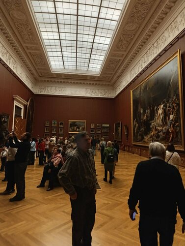 Заранее планировали посещение музея, купили билеты за месяц. Попали сюда в первый раз на основную экспозицию в новогодние праздники. Что понравилось - увидели великолепные шедевры мировой живописи, с которыми были знакомы только по школьным учебникам. Не понравилось следующее: организация посещения выставки основной экспозиции и отношение к посетителям музея. Начну с гардеробной. Нужно было отстоять не менее получаса, чтобы просто сдать верхнюю одежду. Длинные очереди с нервными людьми, которые не понимали, что происходит, не понимали почему не хватает номерков с вешалок, судя по всему не хватало и гардеробщиков. Я понимаю, что много народу, но в Русском музее посетителей будет много всегда ! Надо что то менять! Экскурсию заказать тяжело. Аудио гид отсутствует! Правда?! В наше время, когда у каждого есть смартфон? Информационные Q-коду у экспонатов просто не работали. Возможно для прослушивания нужен был VPN?! Еще нюанс. Для того, чтобы разглядеть многие картины, нужно кругами ходить, чтобы выбрать ракурс, так как освещение такое, что бликует просто невозможно. Это раздражает. Не буду желать вам побольше посетителей, так как судя по всему вы и с текущим потоком гостей не справляетесь. Своим отзывом я не хотел кого то обидеть. Но если честно мне самому обидно за музей, который имеет такой огромный фонд шедевров мировой живописи и не может комфортно организовать посещение гостей. Надеюсь посетить ещё раз этот замечательный музей и не разочароваться.