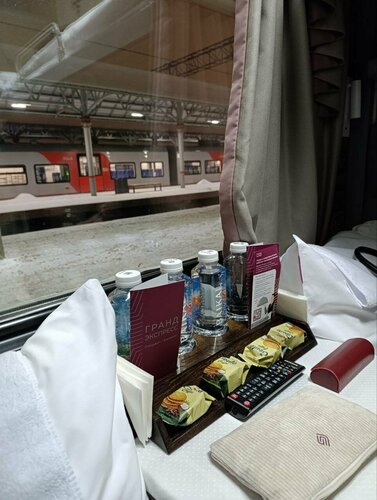 Поездом гранд экспресс пользуюсь не в первый раз (Москва- Питер), купе , ездили в Питер на новогодние праздники. Плюсы: персонал очень вежлив, туалеты чистые, косметичка супер. Минусы: так как это ночной поезд то буду говорить об ощущениях. Я человек крупный и мне было не очень удобно, что в длину, что в ширину (мой рост 178). Поезд трясло так, что заснуть было тяжеловато, да и в купе что-то скрипело. Заснул только часа в три. Завтрак не очень вкусный. Короче, наверное это последний раз, когда я езжу в Питер не на Сапсане.
