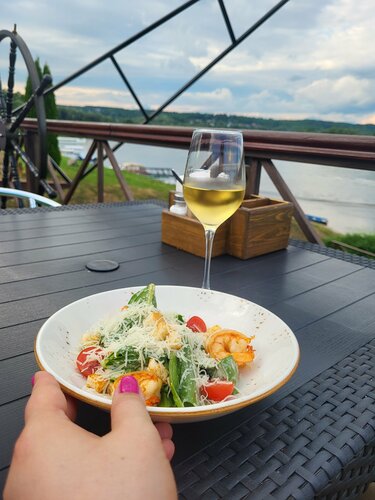Сама атмосфера Тарусы уже подталкивает поставить этому место 5 звёзд. Я сидела на веранде... Шикарный вид на Оку! По меню -неплохо, заказала салат Цезарь с креветками, вкусно, подача нормальная. Алкоголь недорогой, брала бокал шардоне. Обслуживание вежливое, единственное - нет безналичного расчёта... Это, кстати, во многих местах в Тарусе, так что, готовьте наличные. Прошёл год после того, как я оставила этот отзыв. Этим летом тоже побывала в Парусе, безналичный расчёт теперь есть. Кухня порадовала вкусной пастой.