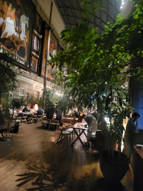 Шикарное место! Заходя сюда, попадаешь в какое-то другое измерение. Невероятный интерьер! Огромное пространство, как будто улица внутри улицы и одновременно галерея искусств. Столик надо бронировать заранее, даже во вторник не сразу получилось забронировать, все было занято. Кухня грузинская, вкусная. Обслуживание тоже на высоком уровне. Цены - достойно демократичныеидля такого уровня заведения.