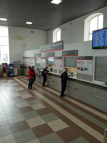 Всё простенько и убого,именно так выглядит вокзал.В зале ожидания тесно,душно.Хочется выбежать отсюда на свежий воздух.