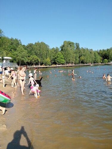 Думаю,одно из хороших мест для пляжного отдыха в Московской области.Есть раздевалки,бачки для мусора.Завезен песок,на земле валяться не надо.Озеро пологое,мелкое.Подходит очень для детей.Думаю,понравится всем.Единственное,что может омрачить отдых-бывают слепни и осы.Нужно быть немного бдительным.Кусаются они больно.