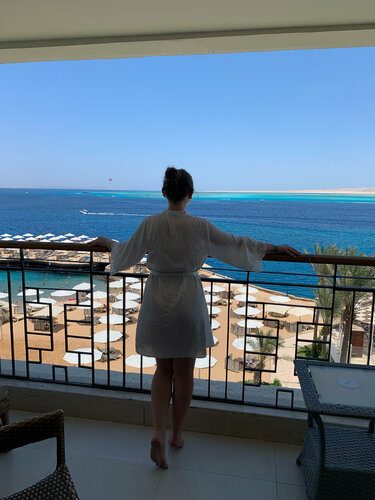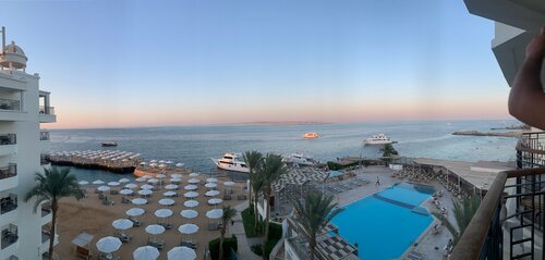 Были в июле 2024 в свадебном путешествии. Хоть и просили туроператора вид на море-не помогло. Сразу + прилетели утром, заселить готовы были уже в 12. Но заселили в тихий ужас, старый номерной фонд, с видом во двор на лестницы и клумбу внизу, и главное раздельной кроватью 😁 спасибо русскоговорящим девочкам на ресепшен и где-то нашему напору, 130$ доплаты решили вопрос на прекрасный вид и большую кровать ⭐️ в комплимент молодоженам принесли нам торт и тарелку фруктов. Немножко терялись в планировке отеля в 1 день, но это как обычно везде бывает. В целом все рядом. Понравилось, что не было проблемой брать закуски к бассейну. В море плавали раза 3-5 в масках посмотреть на рыбок, поделать фото с берега где мелко, не морские мы отдыхатели, нам бассейн по душе ☺️ По еде и воде. Конечно без отравлений не обошлось, на день 3 я слегла (рвота и пр прелести) сразу совет: не лечитесь тем, что привезли -не поможет. Местные микробы лечат только местные лекарства. В аптеке напротив отеля это удовольствие станет 10$ за 2 пластинки, поэтому лучше купить сразу где-то в городе. Еду пытаются делать разнообразной, но слабо, не смотря на день когда и кальмары и раки. Мы вроде и не привередливые, но есть с чем сравнить. Так же кстати не было проблем взять фрукты в номер это тоже + Мини бар раз в неделю это - Анимация скучноватая для отеля 16+ брали фрукты, коктейли и шли в номер. Русских было мало, а если и были то все тихушниками сидели. Только на мистер отель поняли как много русских вокруг. Экскурсии у гида не берите. Мы сколько ездим, всегда бронили на сайтах, но гид нас убедил что за 40$ с человека нас на дайвинг повезут группой 10 человек 🤣 наивные Потом уже через сайт ездили в деревню к бедуинам. В городе большой минус: каждый пытается тебя обмануть. Даже если сторговались, смотрите сколько сдачи. Мы брали фотографа русскую девочку, которая там живет, она нам рассказала и показала местные магазины, алкомаркеты и т.д. и научила общению с местными. Еще очень навязчивые диллеры 🚬, могу идти за тобой по пятам, пока грубо не пошлешь. Были 9 дней 8 ночей с перелетом. на 5 стало скучно, уже даже думали что зря детей не взяли, на 7 уже хотелось домой. Выезд был в 12, в номере остаться за доплату не разрешили, предоставили другой за 10$ в час. Там и помылись и поспали еще после обеда. Итог: Понравилось? -в целом да, хотя бы таким шикарным видом из номера. Поедем еще? -нет Не только в этот отель, а в Египет в целом.