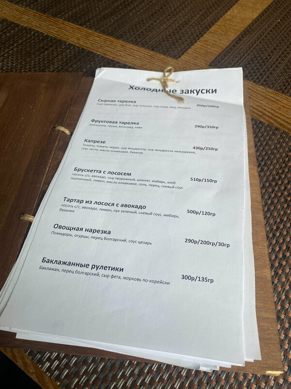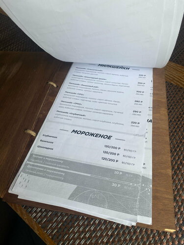 Меню оставляют желать лучшего в плане качества исполнения ,будто его официант сам перед сменой сделал . Отдельный цветной листочек красивый и цены приятные в бизнес -ланче . Порадовал морсик за 75 рублей . Но основное меню ….там еще и цены за одно блюдо от 400 рублей начинаются ,дороговато кажется в среднем у них все .