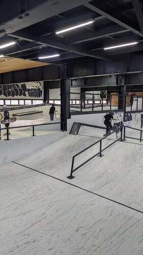 Отличное место! Всем райдерам любого возраста и уровня подготовки могу рекомендовать эту площадку. Говорят это лучший крытый скейтпарк. На мой взгляд тут есть все необходимые вещи для серьезных тренировок и для просто покататься. 90% детей на самокатах, но были замечены и скейтеры и роллеры, а так же бмиксеры). На сайте можно найти и расписание работы и заказать урок с тренером. Так же на сайте написано, что нужно предварительно записываться для посещения, но по факту все просто приезжают и катаются без всяких записей. Шлем и наколенники можно взять в прокат. Есть небольшой тематический магазинчик. Отдельно хочу отметить общий культурный уровень на площадке на несколько порядков выше обычных уличных парков где мат, к сожалению, является нормой общения даже среди детей начальной школы. Тут я такого не услышал и был очень приятно удивлен. Такой показатель уверен сильно повышает уровень лояльности родителей к этой площадке и к направлению в целом.