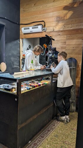 Замечательный, небольшой магазин. Отличный персонал с профессиональным пониманием ассортимента и проблем с которыми сталкиваются райдеры. А так же помогут с некоторым небольшими ремонтом или например с переклейкой гриптейпа на деке. Ассортимент товара к сожалению не велик но полагаю хорошо сбалансирован спросом, а для всего остального есть интернет.