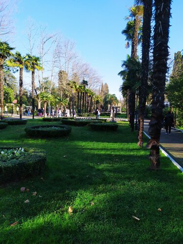 Красивая, разнообразная растительность, даже зимой есть на что посмотреть . Канатка не работала, добрались на верх за 200 руб на электрокаре, потом пешком гуляли вниз. Нижний парк меньше по площади, есть озеро с белыми и чёрными лебедями.