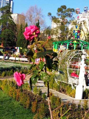 Отличный парк для прогулок не только с детьми, есть атракционы, кафе, много лавочек, бювет с минеральной водой, океанариум и дельфинарий.