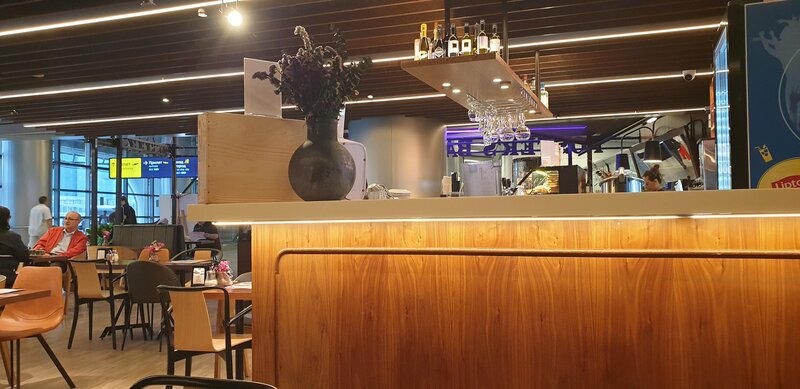 Хорошее кафе, кормят вкусно, обслуживают быстро, посадочных мест много. Был у них три раза за год, всегда приветливый персонал и только позитивные впечатления. Всем рекомендую, находятся в углу здания аэровокзала ниже этажом от стоек регистрации