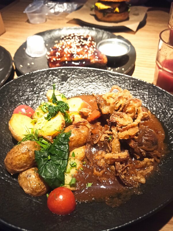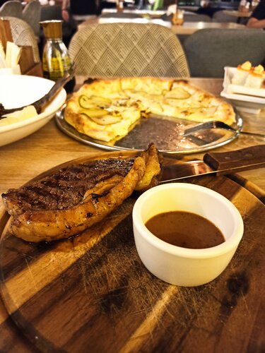 Сразу к плюсам и минусам. Огромный минус, это обслуживание. На ресепшене встретили и посадила за столик сразу, а вот ждать официанта пришлось порядка 20 минут. Соответственно первое блюдо было ещё через 10 минут и это был хлеб. Резюмирую, еду конечно принесли, но хотелось бы всё-таки быстрее. Есть с чем сравнить, ресторан Бык на Алексеевский. Все блюда были через 7-10 минут. Качество блюд на высоте. Всё вкусно, поварам отдельное спасибо. Ресторан находится на первом этаже ТЦ Рио. Рассчитан на 800 мест. Парковка есть.