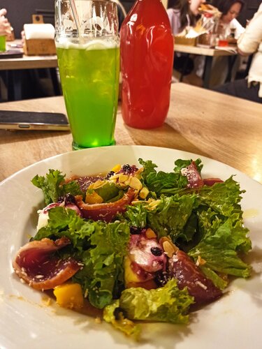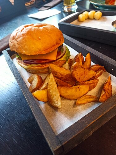 Ну что можно сказать, не плохо! Были в обеденное время. Несмотря на очень большое количество людей, столик нам подобрали очень быстро. За это плюс) Что касаемо обслуживания, всё тоже на высоте. Сразу подошёл официант, подготовил стол и принял заказ. И о чудо, через 5 минут стали появляться блюда. За 10 минут нам принесли весь заказ. Молодцы)) Реально всё вкусно, особенно понравился суп и бургер! Повара молодцы! Ресторан понравился, всем советую! Находится на втором этаже, в минуте ходьбы от метро Алексеевская. Парковки рядом нет.