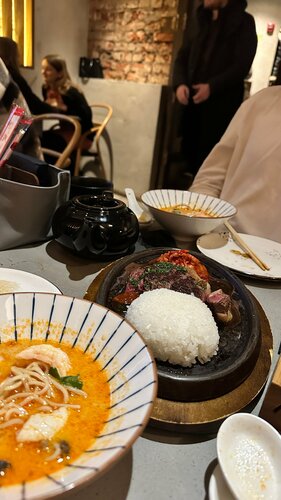 Хотели посетить данное заведение из-за возможности самостоятельного приготовления Том Яма на гриле, позабавило и получилось вкусно. Впечатление портит подача блюд от часа и более, девушка-официант вообще будто не знает меню и наличие напитков на складе (бегала туда-сюда).
