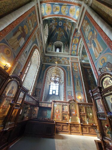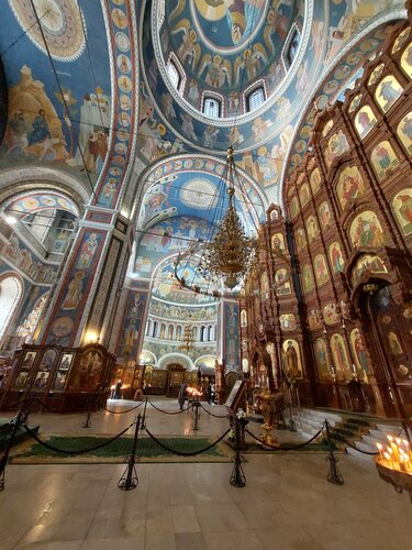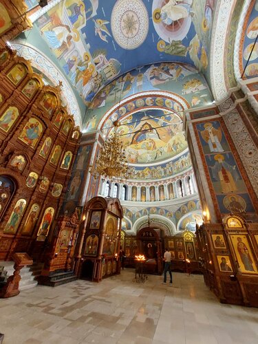 Очень красивый храм. Это нужно видеть самим. На входе обязательно надеть фартук и платок женщинам, если вы в брюках и без платка. Это все лежит в шкафчике аккуратно сложено. Святая вода бесплатно, пей и бери сколько хочешь. Рекомендую к посещению!