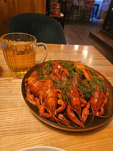 Интересный гастробар. Приходил по рекомендации товарищей. Всё меню так или иначе с рыбой/морепродуктами. Основная фишка, это конечно - раки. Более 15 видов подачи. Брал 1 кг "донских" раков, с укропом и ларушкой.. Зашли "как к себе домой")) Есть местное пенное розливное.. Раки 1 кг - 3300 руб., можно взять 0,5 кг., оно того стоит.. Супруга взяла стейк из лосося, ок 950 руб. Для ребенка квас, фри и тартилья с сыром.. Они раков не едят) В целом на троих чек вышел - 7700. Однозначно рекомендую зайти.