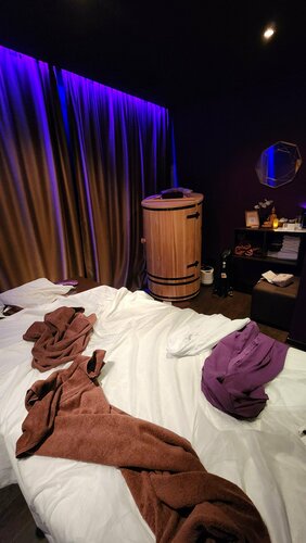Отличный сервис. Идеальный подход к клиенту. Встречает очень приветливая девушка, которая уточняет все детали по запросам, до мелочей, записывает это на карточку и передаёт мастеру массажа. Выдаётся специальная пижама, в комнате подбирают освещение и температуру комфортную для тебя, время пролетает быстро. Мастер профессионал. Я очень избалована хорошим сервисом, к этому месту нареканий нет, всё продумано, всё идеально. Рекомендую. (На фото мои разбросанные вещи и полотенца, которыми накрывали во время массажа. А вообще очень чисто и порядок в салоне)