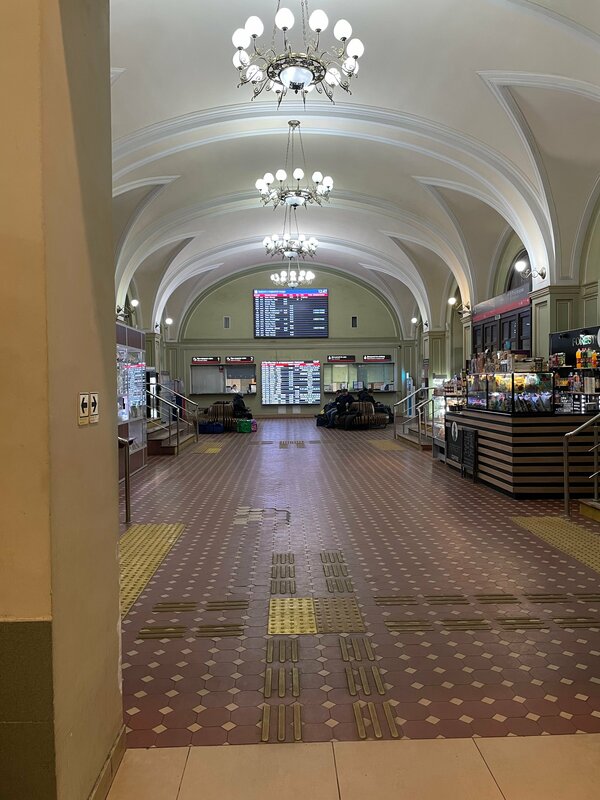 Всем доброго дня . Уютный , чистый вокзал . Кто не успел приобрести сувениры, есть павильон ). С хорошим выбором . Кассы , где можно приобрести билеты. Кафе. Зал ожидания. Очень приветливый , вежливый персонал ….