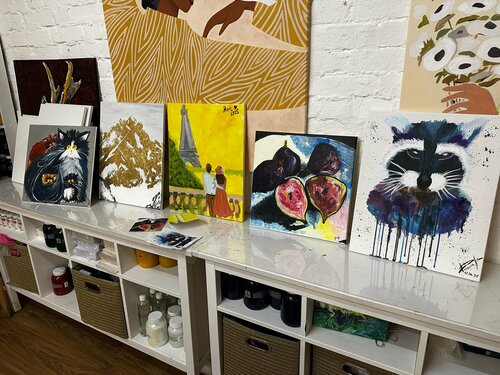 С девочками отмечали девичник в студии, так как невеста очень творческая, и любит проводить время подобным образом) Хочется выразить благодарность ведущей Ксении - приятная улыбчивая девушка, с которой мы смогли написать красивые работы 🥹 сама студия приятная, уютная, все необходимое для посиделок есть - одноразовая посуда, вода, бокалы) и для написания картин много качественных материалов) еще раз спасибо за классный вечер! Советую эту студию для проведения праздников ❤️
