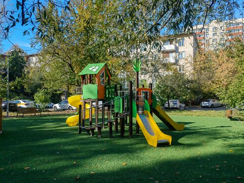 Если б можно было поставить 6, поставила бы все 10. Небольшая, но все есть. Ребенок 3х лет сам везде без помощи может залезть и спуститься, абсолютно безопасно. Очень современная, яркая. Батут, удобные качели с перекладиной, 2 паутинки, карусель и качель, песочница, и 2 комплекса с горками. Отдельный плюс: много лавочек и мусорных корзин.