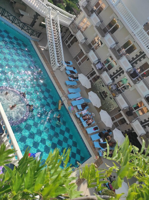 Хорошее место, особенно когда на море неплавательная погода. Можно вкусно перекусить. Территорию вокруг в этом году обновили, рядышком построили торговые ряды. Кому надоест бассейн, можно выйти за пределы заведения сразу на галечный пляж.
