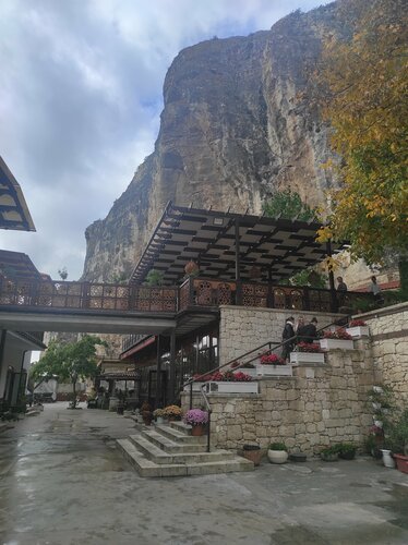 Очень красивое место у подножия скал Бахчисарая. За одни виды уже можно ставить плюсы! Ресторан очень вместительный,есть несколько площадок как на нижнем, так и на верхнем этажах. Еда вкусная очень. Персонал очень обходительный. Спасибо.