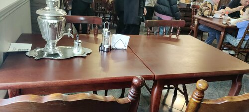 Теперь это трапезная "Расстегай". Заказывали уху, борщ, расстегай рыбный, картофель жареный и расстегай куриный, пирожок с клюквой, пирог с лимоном. Всё очень вкусно. Рекомендуем. Мебель и убранство очень хорошие.