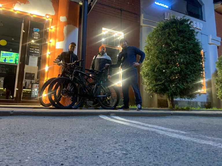 Очень классно!! Есть столб можно прицепить велосипеды!!!пиво холодное вкусное!!!! Кухня тоже норм!!!!