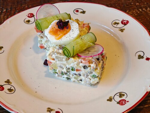 Останавливались в Переславль Залесском на пути из Москвы в Ярославль на ночёвку для экскурсии по Переславлю. Хозяйка квартиры рекомендовала данный ресторан как лучший из русской кухни с городе. Наги впечатления положительные. Подача отличная. Время подачи блюд также не продолжительное. Сами блюда нам понравились, что не смогли съесть забрали с собой. Всё, что заказывали вполне приличного вкуса и качества. Есть салат с ряпушкой и оливье с сомом. Брали филе судака и пельмени с уткой Вполне аутентично и оригинально. Жаль были за рулём и не отведали местных настоек, коих в меню есть. Для Переславля твёрдая пятёрка. По московским ценам не дорого. Ужин на двоих без алкоголя до 3 тыр