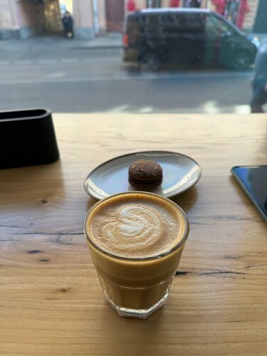 Это превосходная сеть. Как мне бариста сказал на кассе, у них аж четыре заведения. Нужно будет все посетить и узнать, так же классно ли все у них там. Кофе и выпечка просто вкуснейшие. Заказала себе чашку флэт Уайт и макорини. Очень вкусно. Тут всегда вкусно 🤤.