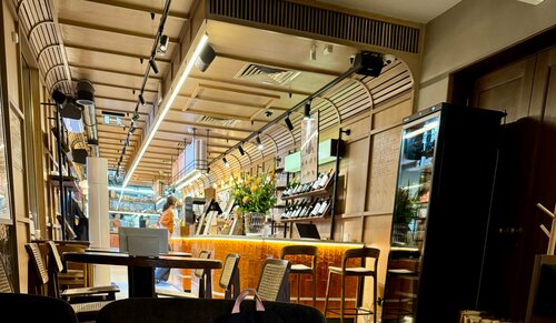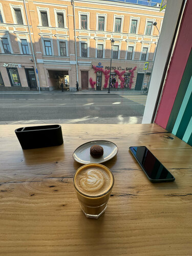 Купила себе чашку кофе и такая я довольная хожу. Приятная атмосфера в кафе. Играет такая приятная музыка. Стоит отличный вайб. Кофе великолепный. Очень бодрит.
