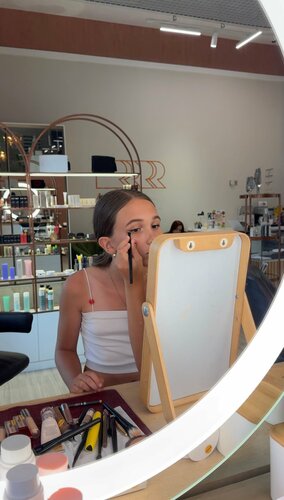 Дочка была на услуге "Макияж для себя" подросток 12 лет, пришла просто с восторженными отзывами и таким красивым макияжем. В салоне объяснили, как нужно ухаживать за кожей подростка, на какие детали надо обращать внимание при выборе уходовой косметики. Но и главное научили, как правильно нужно наносить макияж, какие кисти для чего использовать, научили рисовать стрелки и подбирать тон. Для подростка я считаю, просто необходимо для начала сходить к профессионалу, попробовать, узнать азы, а дома уже набивать руку. Однозначно в салоне работают профессионалы своего дела. Сам салон оставляет приятное послевкусие. Всё сделано очень стильно, много продуманных деталей. И еще не мало важно, в салоне есть мини магазин косметики, где представлена не только продукция масмаркета косметики, но и профессиональная, а также косметика аналоговая дорогим маркам. Были приобретены румяна, фирму которой до этого даже не знали, но очень довольны результатом уже после 2 месяцев использования. Я считаю эту услугу можно подарить в качестве даже подарка на День рождения, любая девочка оценит, а можно просто прийти с подружкой и погрузить к мир косметики и приятно, а главное познавательно провести время. Спасибо салону за эту возможность!