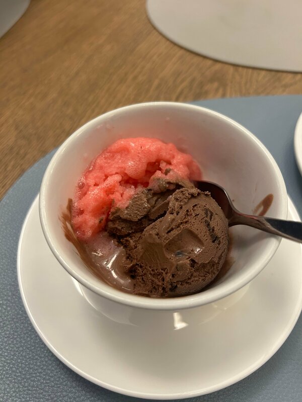 Очень любили это место, но прийдя в очередной раз остались неприятно удивлены. То ли повар поменялся, то ли не в настроении, но блюда по вкусу гораздо хуже, чем обычно. Что касается десерта, специально спрашивали у официанта клубничное мороженное сорбет или обычное-сливочное, сказал-не сорбет, в итоге принес жижу в пиале и утверждал, что это сливочное. Как выглядел этот «шедевр» на фото видно.