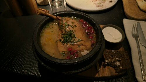 Очень не плохо, выбор не большой, но всё выглядит красиво и всё то, что мы брали было вкусным. Многие рекомендуют и нахваливают уху, но я рекомендую кислые щи с полбой и уткой...