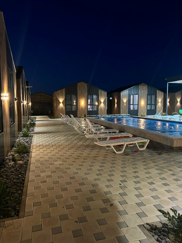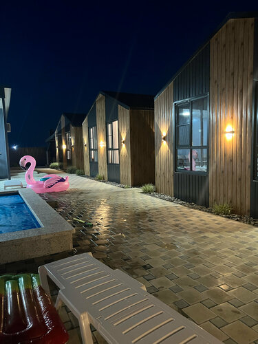 Отдыхали июнь 2024 огонь 😍, прям рекомендую. Домики свежие, белье/полотенца прям нормальные. Басик с подогревом, мангальная зона просторная, парковка для авто, в каждом доме свой WiFi, гамак на террасе супер особенно вечером полежать) при раннем заезде с нас НЕ ВЗЯЛИ доплату!!! Правда дом был свободен и да ранний заезд это было 4 утра 🥹🤪 магнит 5 мин на авто, пляж 15 мин на авто (где пешее расстояние пляж мы просто не ходили). Территория закрытая никто ни за что не переживал. А еще в сауну ходили но все ок там и она ну прям новая и оч приличная и из нее в бассейн прям супер прыгать) короче однозначно рекомендую, уверена не пожалеете. Хозяйка адекватная, доброжелательная, без заморочек, предоплату скидывала (все норм потом в зачет по итогу).