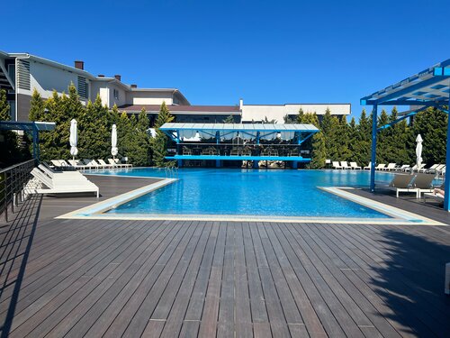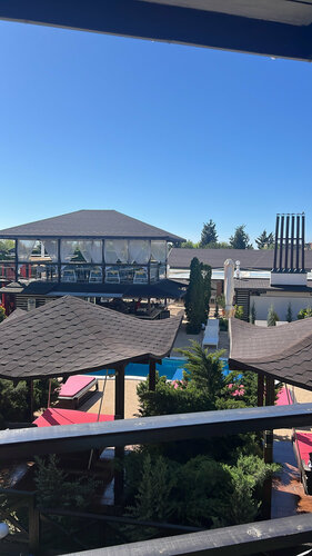 Отдыхали на майские праздники с 2 по 10 мая в 2025, мне лично все понравилось! Один бассейн с подогревом можно спокойно плавать, большой без подогрева (в мае холодно в нем), море конечно не прогрелось поэтому только прогулки)) если выберете номер с видом на море то имейте ввиду, что вечерняя музыкальная программа очень слышна в номере. Из плюсов завтрак очень приличный, кофе из кофе машины, каждый вечер есть развлекательная программа, доставка еды в номер, принимают к оплате карты. Из минусов парковка без навеса и камер. Ресторан еда вкусная, цены дороже если сравнивать с любым кафе на набережной, поэтому если не лень то вполне можно прогуляться и поужинать дешевле. Из минусов в пешей доступности в мае нет продуктовых магазинов, то есть воды купить не получится. Я бы в общем отметила, что если без авто то конечно тоскливо. Хочу отметить что предоставляется халат, тапочки, пляжные полотенца, гель/шампунь, ежедневная уборка номера, смена белья через 4 дня, персонал приветливый, хорошо следят за территорией отеля, подборка музыки возле бассейна ненапряжная, звук средний (в номере не слышно), матрасы, белье и полотенца в душе отличные)) пляжные мокрые полотенца или если не до сохли утром пока вы на завтраке успевают вам заменить на чистые и сухие! Погода в мае была разная и солнечная (позагорать очень даже удалось) и дождливая и переменная облачность, поэтому конечно приходилось ловить момент - солнце появилось бегом на лежак)! Пополнение бутилированной водой каждый день по 0,5 л на человека. Есть в номере чайник, чашки, бокалы и блюдо, но чая/кофе и кулеров с водой нет. Поэтому если на авто то сразу по пути купите все что вам может понадобиться. Рядом на пешем расстоянии есть фирменный магазин виноконьячного завода Коктебель, цены разные (но можно выбрать на любой кошелек и 0,7 л вина за 360 рублей и 0,7 л за 700/1500 рублей и тд). В этом году набережная перекрыта остался маленький кусочек поэтому погулять особо не получится, пешие прогулки на центральный рынок без нормального асфальта и пешеходного тротуара лично для меня не вариант, но на авто 5 мин и все что вам надо можно купить. Народу в мае особо не было как в самом Коктебеле так и в самом отеле (хотя сотрудники дали ответ что загрузка на майские была 80%, но поболтав с другими гостями отеля они отметили что если сравнивать с августом то прям свободно было). В общем и целом у меня более чем положительное впечатление, отпуск прошел хорошо и главное я точно отдохнула от городской суеты. Могу смело рекомендовать отель, уровень сервиса очень приличный (при условии что для Крыма это в принципе не свойственно и мне есть с чем сравнить и в Коктебеле и других курортах Крыма, уж очень я люблю этот полуостров с видами, климатом и морем). Именинников отель поздравляет пирожным в номер или в ресторане при условии ужина, можно все обговорить на ресепшн. Всем удачи и хорошего отпуска!!!